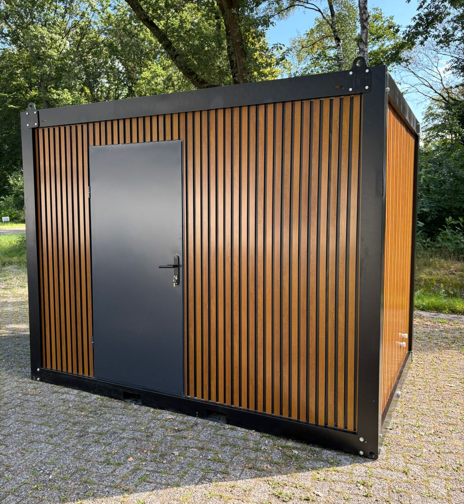 Door is made of steel sheets with lock. Base is covered with 2mm PVC on 14mm fibercement plate.