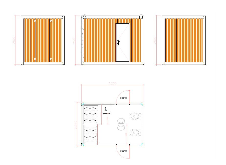 Specifications Portable toilet and shower cabins are simple solutions for toilet problems. Dimension: 220cm*320cm They are made of 40mm EPS insulated sandwich panel. Door is made of steel sheets with lock. ... Devamı