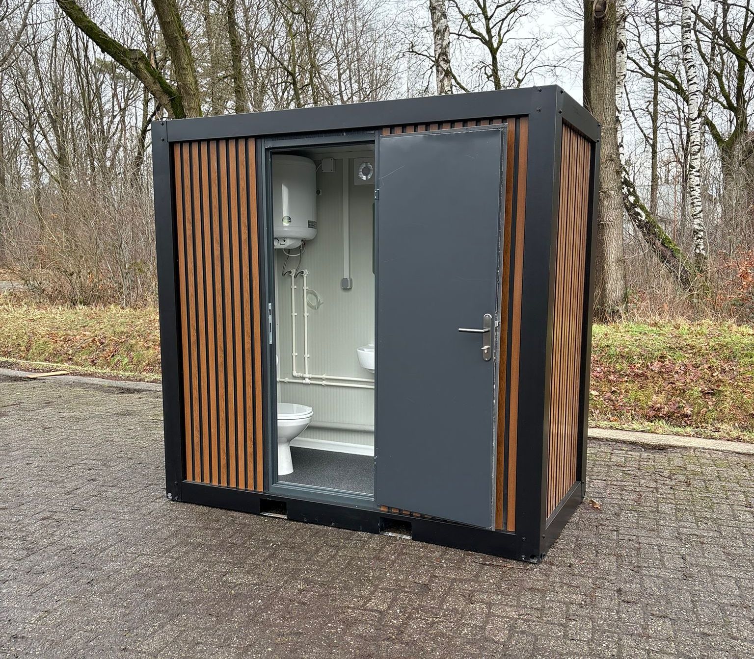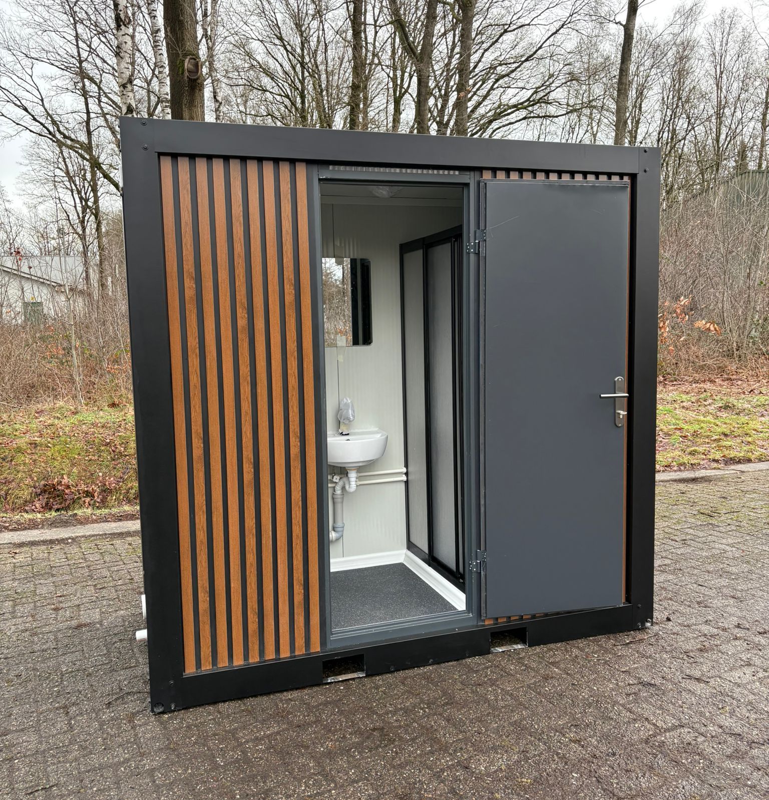- Sanitary Equipment The cabin is delivered ready for use with installed sanitary equipment including: ceramic toilet washbasin with tap mirror toilet paper holder soap holder