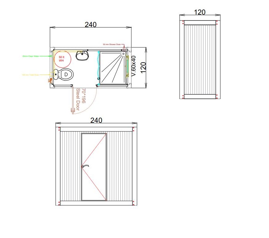- Plumbing Installation All necessary internal plumbing connections are pre-installed. The unit is designed to be connected to an external sewer system and clean water source.